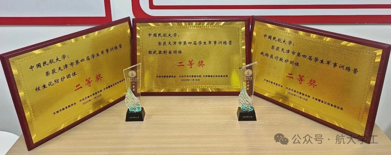 近日,由中共天津市教育工作委员会、天津市教育委员会、中共天津市委宣传部、天津警备区战备建设局联合举办,全市50所高校、共计300名学生参加的天津市第四届学生军事训练营,在中国人民解放军联勤保障工程大学圆满落幕。我校空中交通管理学院学生王玥莹、理学院学生张楚涵、航空服务与安防管理学院学生张煦坤、高家进、孙文浩、王亚楠等六名学生代表学校参赛。本届学生军事训练营设置军事科目和作风养成两大类评选,经过激烈比拼,中航大代表队荣获军事科目团体总评一等奖(全市第1名)、作风养成团体总评二等奖(全市第2名);在五项军事科目团体评比中,中航大代表队荣获轻武器射击团体二等奖(全市第2名)、核生化防护团体二等奖(全市第2名)、战场医疗救护团体二等奖(全市第3名);在个人单项科目评比中,孙文浩荣获轻武器射击个人二等奖、张楚涵荣获核生化防护个人三等奖、张煦坤荣获“优秀学员”。