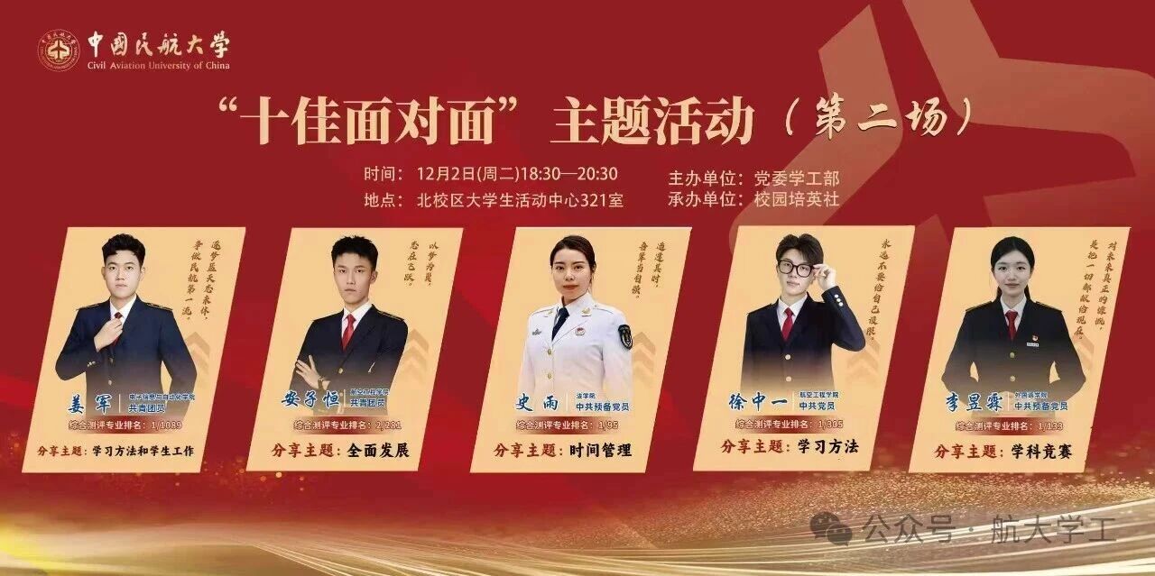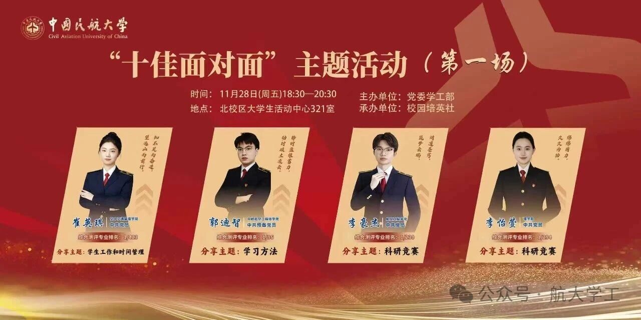 那么这场万众期待的“十佳面对面”优秀学生故事分享会,将为你搭建与榜样面对面的桥梁!十位“十佳大学生”将带着他们的奋斗故事、成长感悟与实用干货,毫无保留地分享逐梦路上的点点滴滴,为你的青春航向注入满满能量!