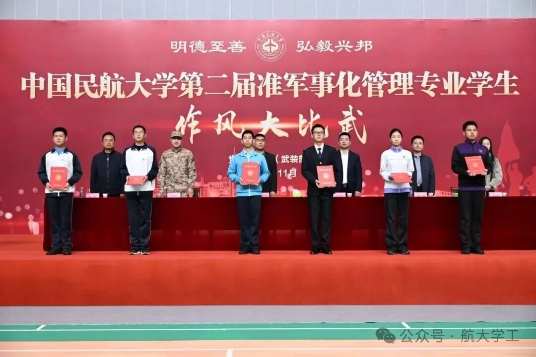 近日,中国民航大学第二届准军事化管理专业学生“作风大比武”活动在宁河校区体育馆举行。空中交通管理学院、飞行分校、航空服务与安防管理学院400余名学生同台竞技,以昂扬姿态展现准军事化管理育人成效和过硬作风。