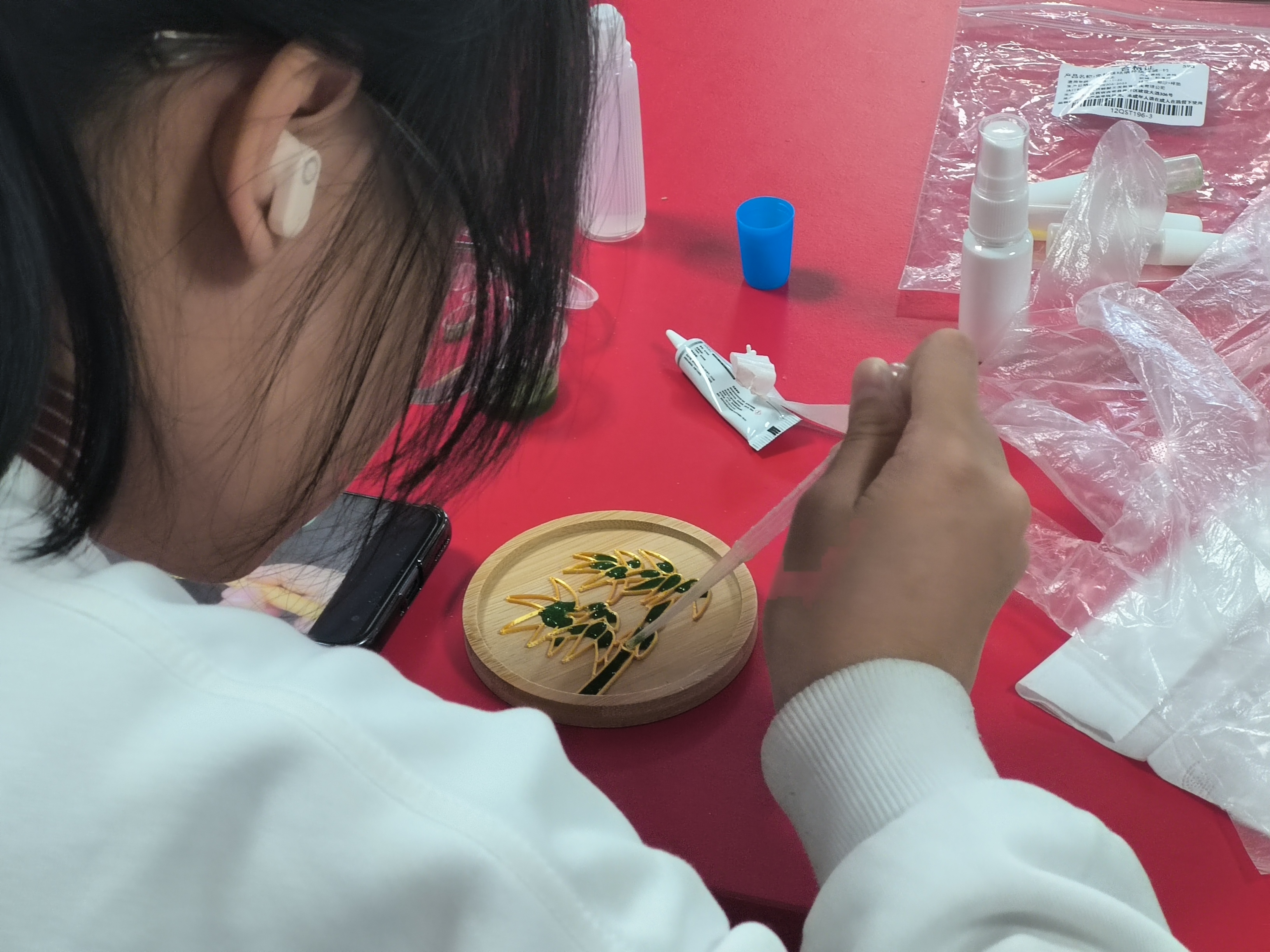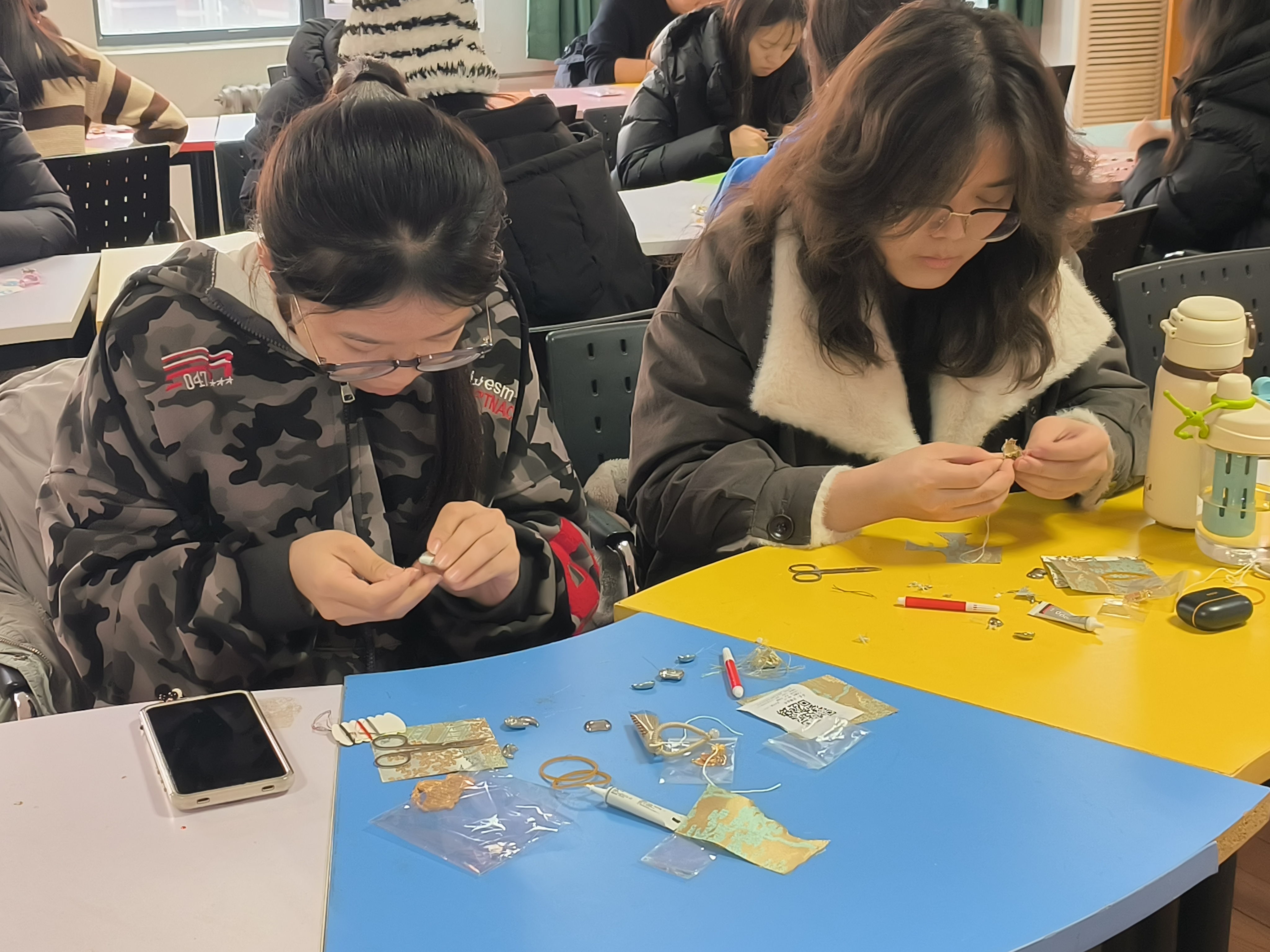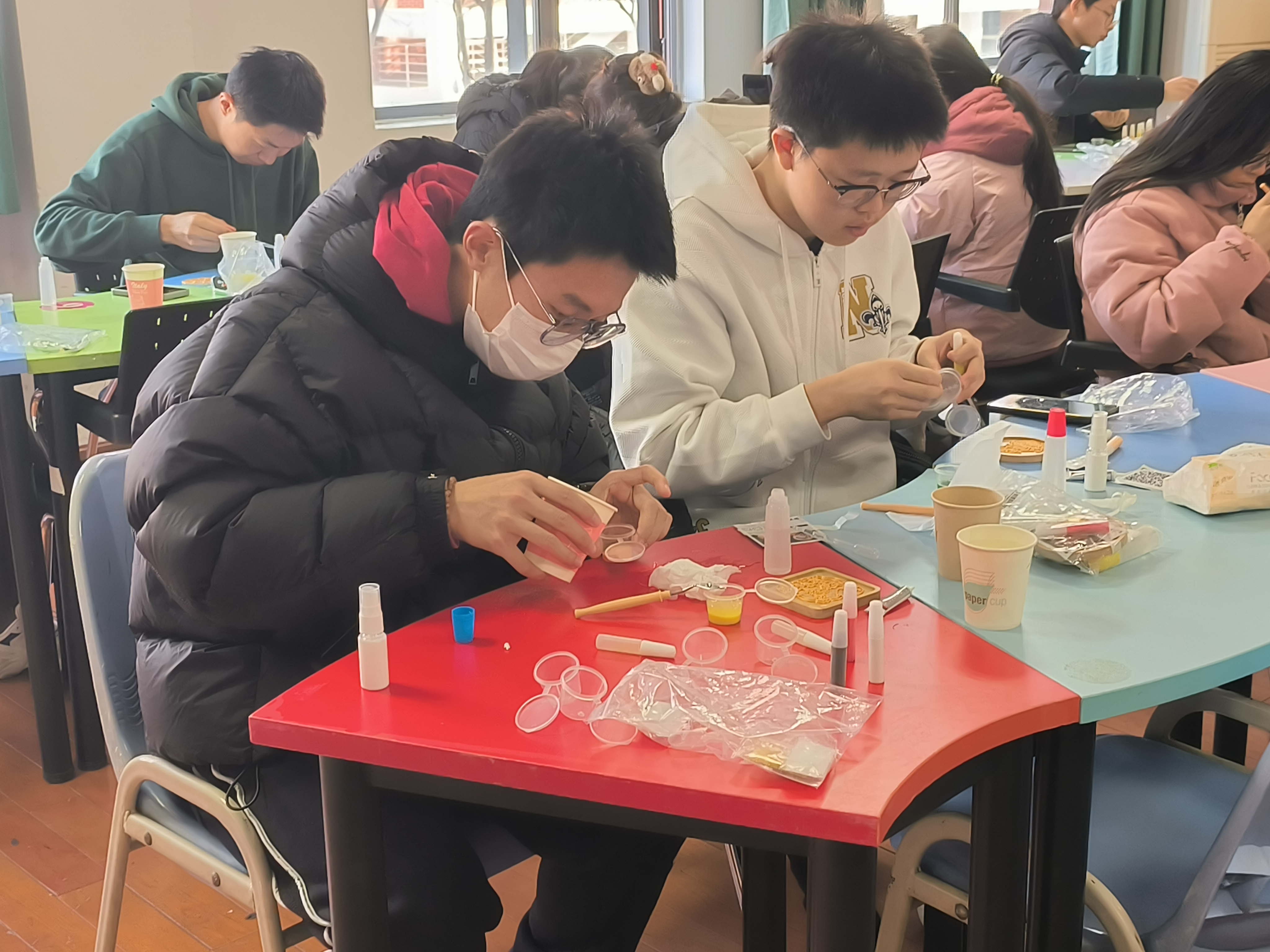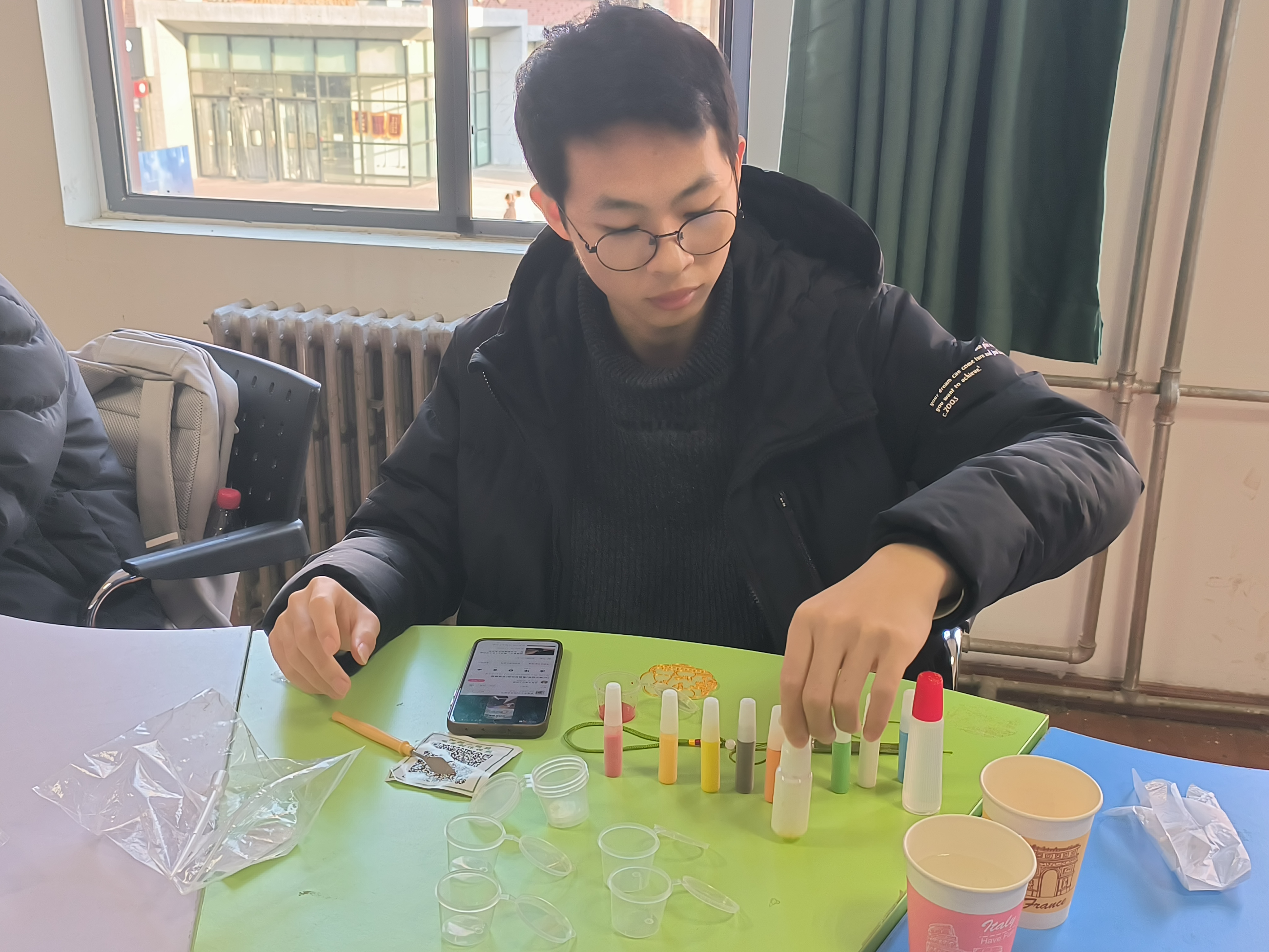 活动现场,大家互相交流技巧、分享配色思路,在指尖的创意碰撞与彼此的鼓励中,不仅完成了独一无二的珐琅杯垫,更在专注创作与温情陪伴里,卸下了学业的重担,获得了心灵的慰藉。