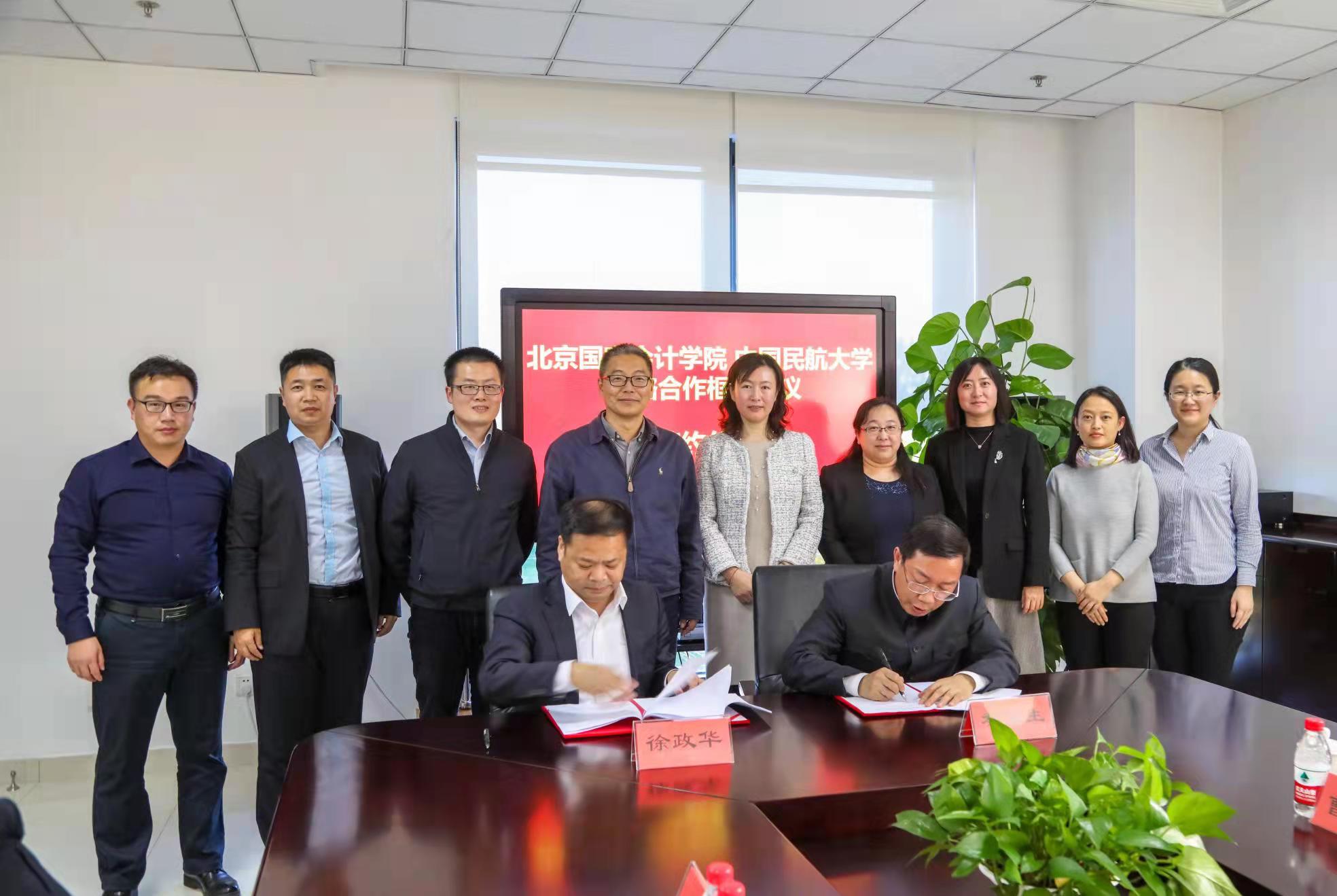 2021年10月27日,我校赴北京国家会计学院商议校际合作并举行战略合作签约仪式,双方本着“优势互补、互利互惠、平等自愿、共赢发展”的原则,拟在财会和航空金融本科专业共建、MPAcc高层次人才培养、实习实训基地建设、科技成果应用转化等领域开展合作。民航局党组派驻中国民航大学纪检组组长、中国民航大学党委副书记、纪委书记徐政华,北京国家会计学院院长秦荣生,代表双方签署战略合作协议。