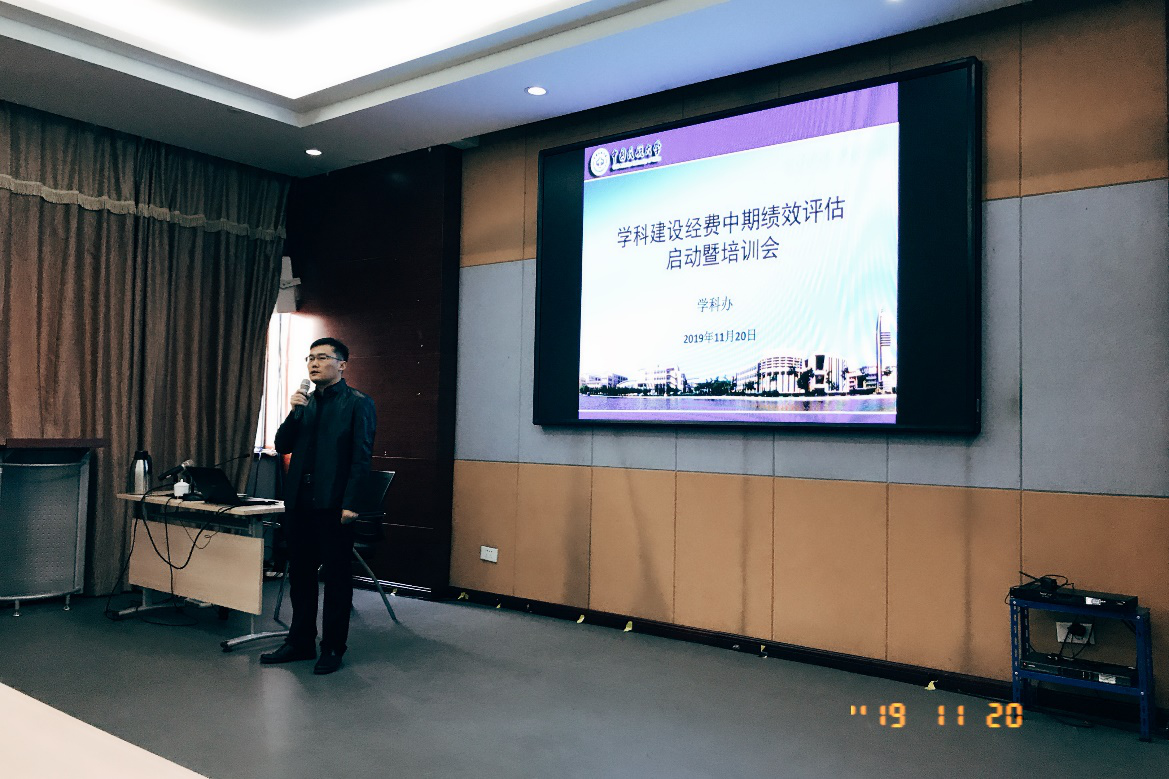 2019年11月20日下午,学科办在学术交流中心第一会议室召开了学科建设经费中期绩效评估启动及培训会,相关学院领导、师资办教师、学科方向团队负责人等65人参加了此次会议。