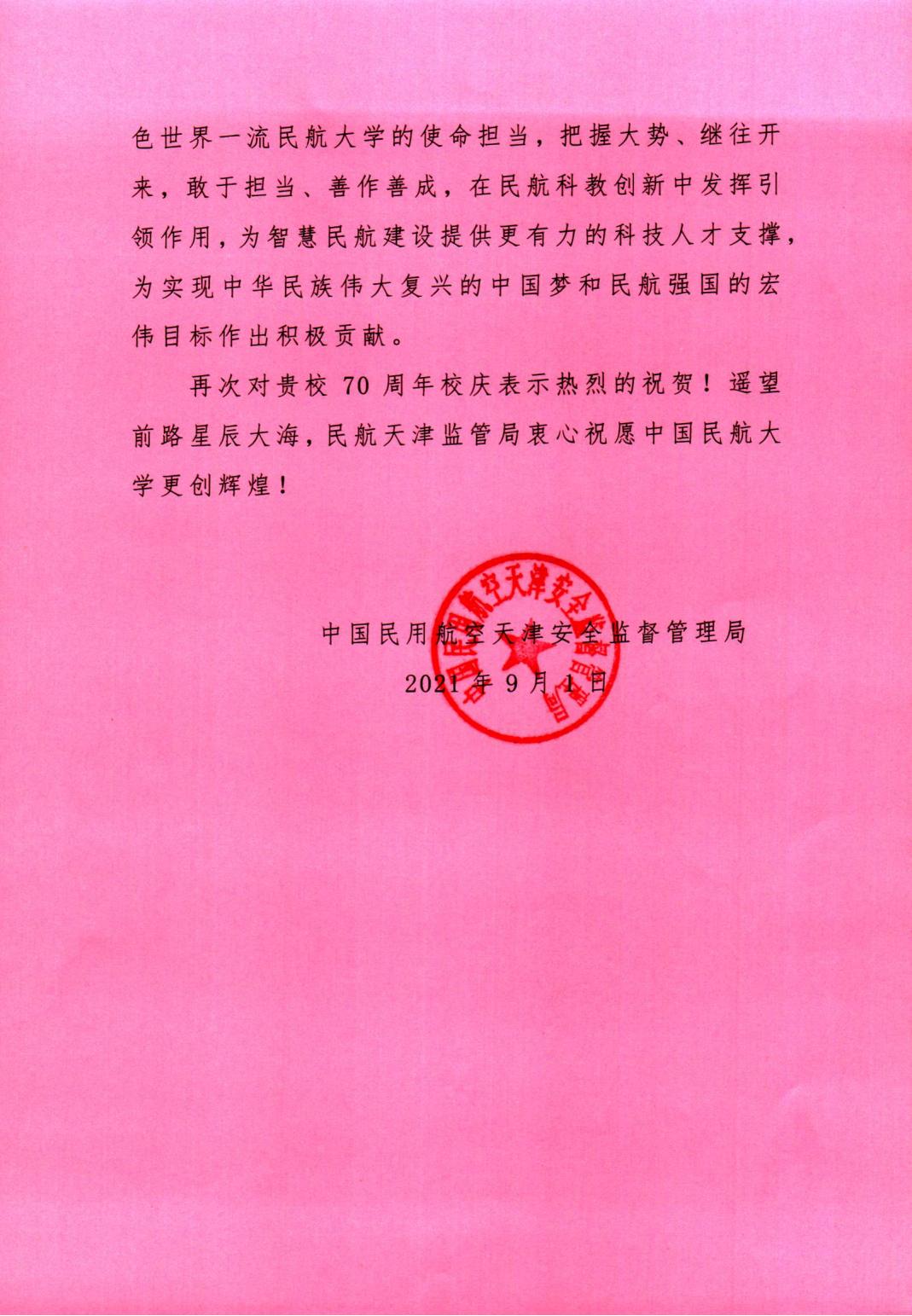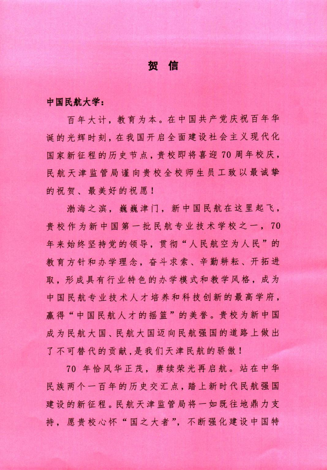 【70周年校庆】中国民用航空天津安全监督管理局发来贺信