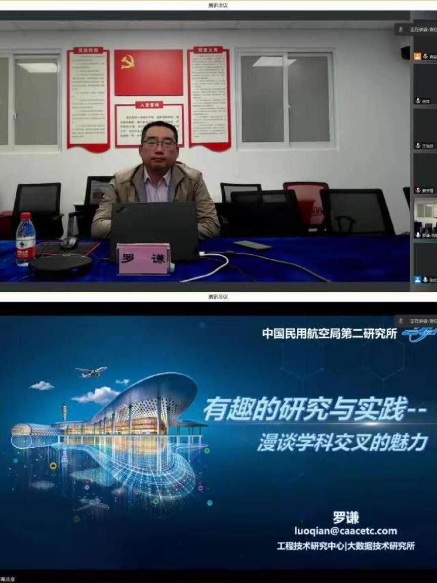 罗谦研究员首先以加强基础研究实现高水平科技自立自强为背景,引出当代社会学科交叉的重要性。之后,罗谦研究员从疫情下民航人的有趣研究、SCI的研究思路、机器智能两次沉寂的打破这三个有趣的研究案例入手,剖析其中那些令人惊叹的“脑洞大开”的瞬间,带领大家在精彩科研实践中漫游,并重点回答了在现有民航信息技术背景下,研究生应如何建立科学的思维方式,研究生如何高效开展有趣的研究,以及如何将这些有趣的研究成果应用于工程实践中去,为研究生开展民航领域的实践性探索、挑战性研究提供一定指导与建议。