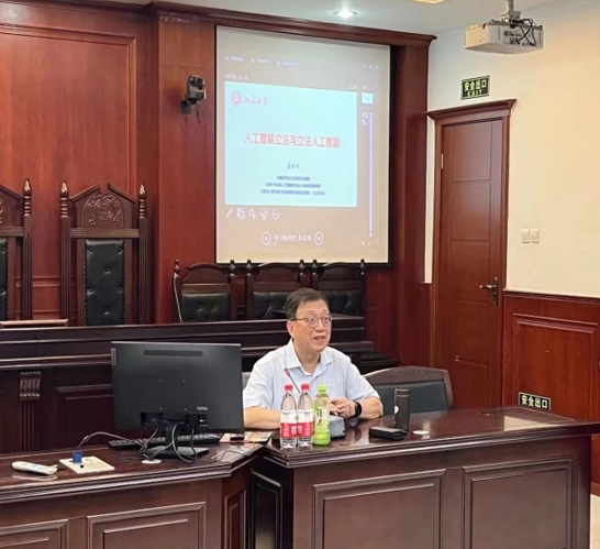 近日,研究生院实践创新讲坛第八期在南教二模拟法庭举办。本次讲坛邀请高绍林老师做了题为“人工智能立法与立法人工智能”的专题讲座。讲座由法学院院长郝秀辉教授主持,吸引了法学院老师、2022级及2023级硕士生参与。