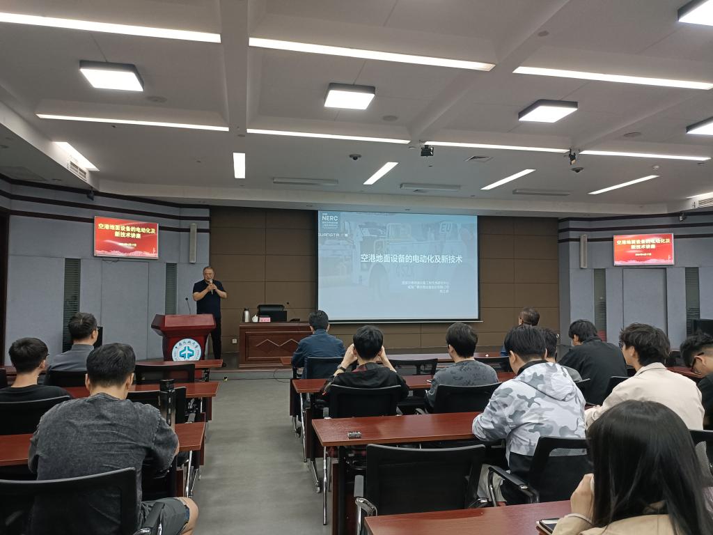 陈江岸研究员以自身30年从事航空地面静变电源和空港地面设备电动化、智能化方面的产品研发工作经验为背景,引出了当下空港地面设备日新月异的新技术。在讲座中,陈江岸研究员从技术参数和环境效益方面介绍了飞机APU替代项目中的静变电源以及机场特种车辆“油改电”项目可靠性高、经济性好等优势,分析了空管地面设备电动化在提升安全和效率上面临的主要问题及解决方案。此外,陈江岸研究员向同学们展示了换电技术、电动化和智能化技术、储能技术、无人驾驶技术、网联化技术及视频监控技术在空管地面设备上的应用,使同学们对空管地面设备新技术有了更清晰的认识,为同学们日后的学习工作方向提供了参考。