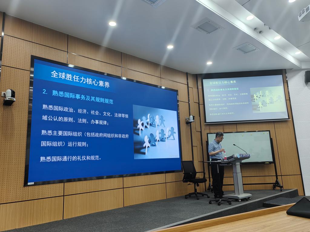 马燕生从“什么是全球治理”、“中国参与全球治理:历史与现状”、“中国参与全球治理面临的困难和挑战”及“全球胜任力人才核心素养与能力培养”四个方面做了分享。马燕生根据自身从事人文外交和教育国际合作与交流40余年的经历和经验,基于全球胜任力人才培养,认为高层次国际化人才需要具备的全球胜任力核心素养与能力:“中国情怀,国际视野,世界胸怀;专业复合,多语熟练,技能全面;能于竞争,善于交流,融通中外。”