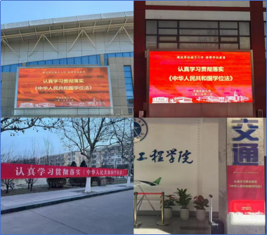 与此同时,学校还以横幅和电子屏海报等方式,全方位、多层次面向不同人群的学习网络,将推动《学位法》精神融入日常教育教学与管理的各个环节,进一步促进学位授予工作的规范化和法治化。