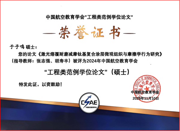 中国航空教育学会自2024年起设立“工程类范例学位论文”评选,鼓励硕士、博士研究生潜心科研,产出高水平学术成果,解决航空领域关键工程问题,助力青年拔尖创新人才培养。首届评选共遴选出9篇优秀硕士学位论文。