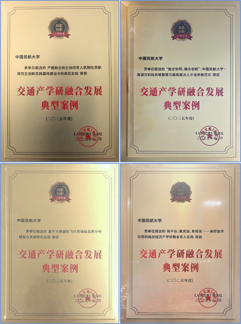 日前,2025年人民交通大会在福州开幕。我校研究生院与科技处联合组织提交的《产教融合校企协同育人机制在民航研究生创新实践基地建设中的典型实践》《路空协同,融合创新:中国民航大学-南湖交科院共筑智慧交通高层次人才培养新范式》《基于大数据的飞行员操纵品质分析模型与系统转化应用》《筑平台、聚资源、育栋梁-高校智库引领的临空经济产学研融合育人实践》四个案例成功入选大会主办方遴选的“全国交通产学研融合发展典型案例”。
