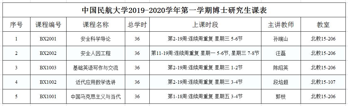 博士生第一学期课表