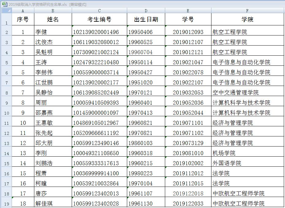 由于没有按时报到或不符合研究生录取条件,以下研究生取消入学资格,不进行学籍注册,公示期为5天(工作日),截止到2019年9月25日,如有异议,请尽快与研究生部联系,电话:02224092143,联系人:赵拥军。