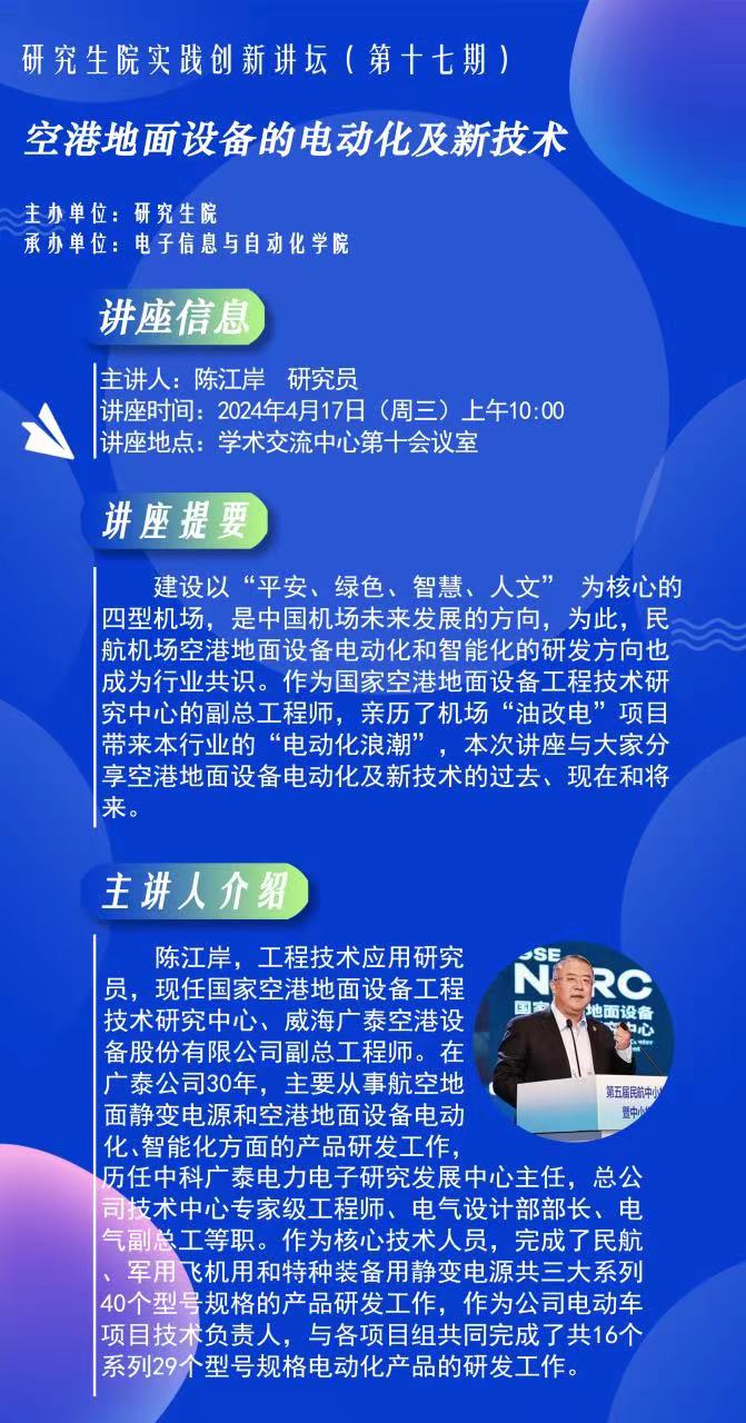 建设以“平安、绿色、智慧、人文” 为核心的四型机场,是中国机场未来发展的方向,为此,民航机场空港地面设备电动化和智能化的研发方向也成为行业共识。作为国家空港地面设备工程技术研究中心的副总工程师,亲历了机场“油改电”项目带来本行业的“电动化浪潮”,本次讲座与大家分享空港地面设备电动化及新技术的过去、现在和将来。