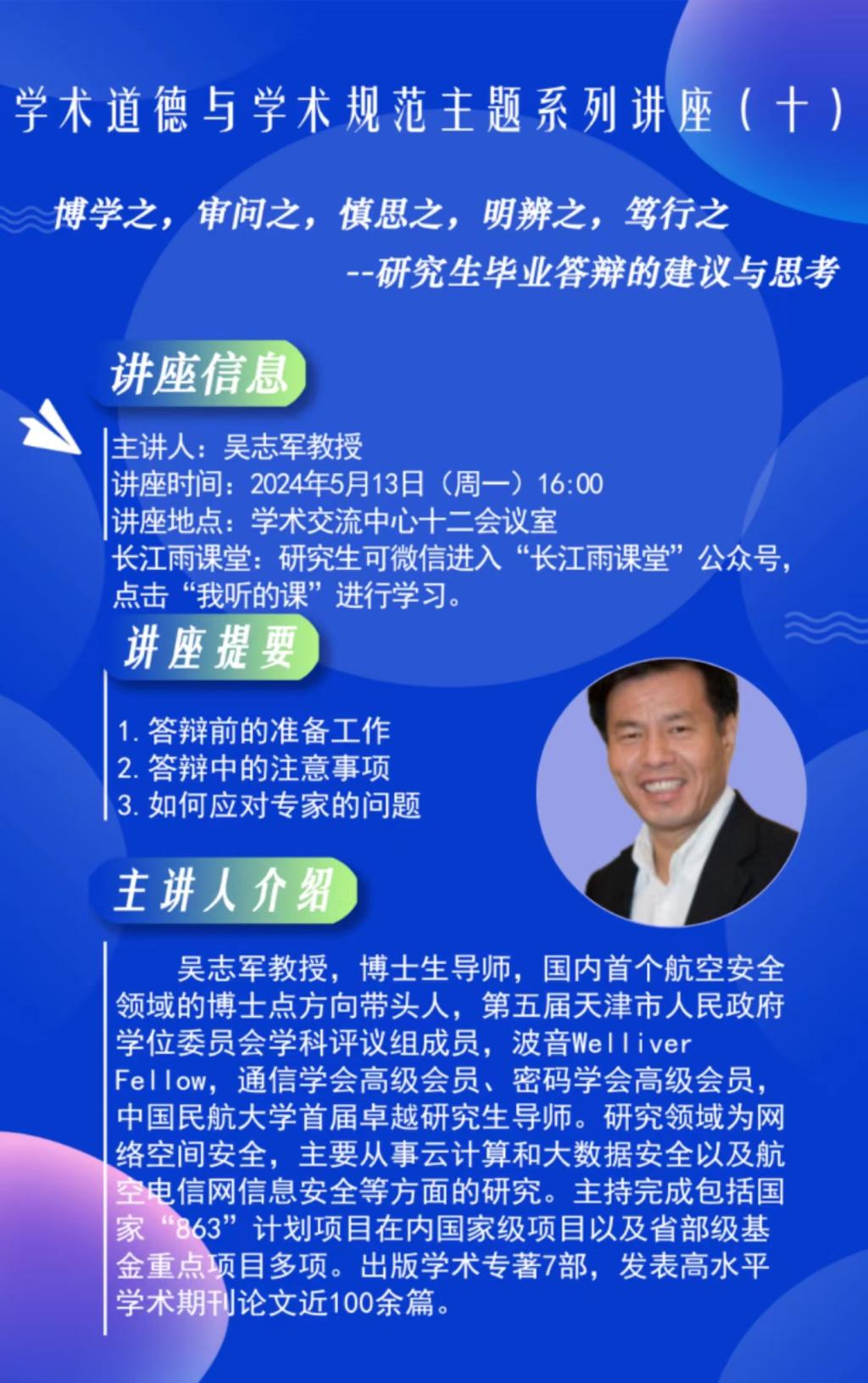 讲座题目:博学之,审问之,慎思之,明辨之,笃行之--研究生毕业答辩的建议与思考