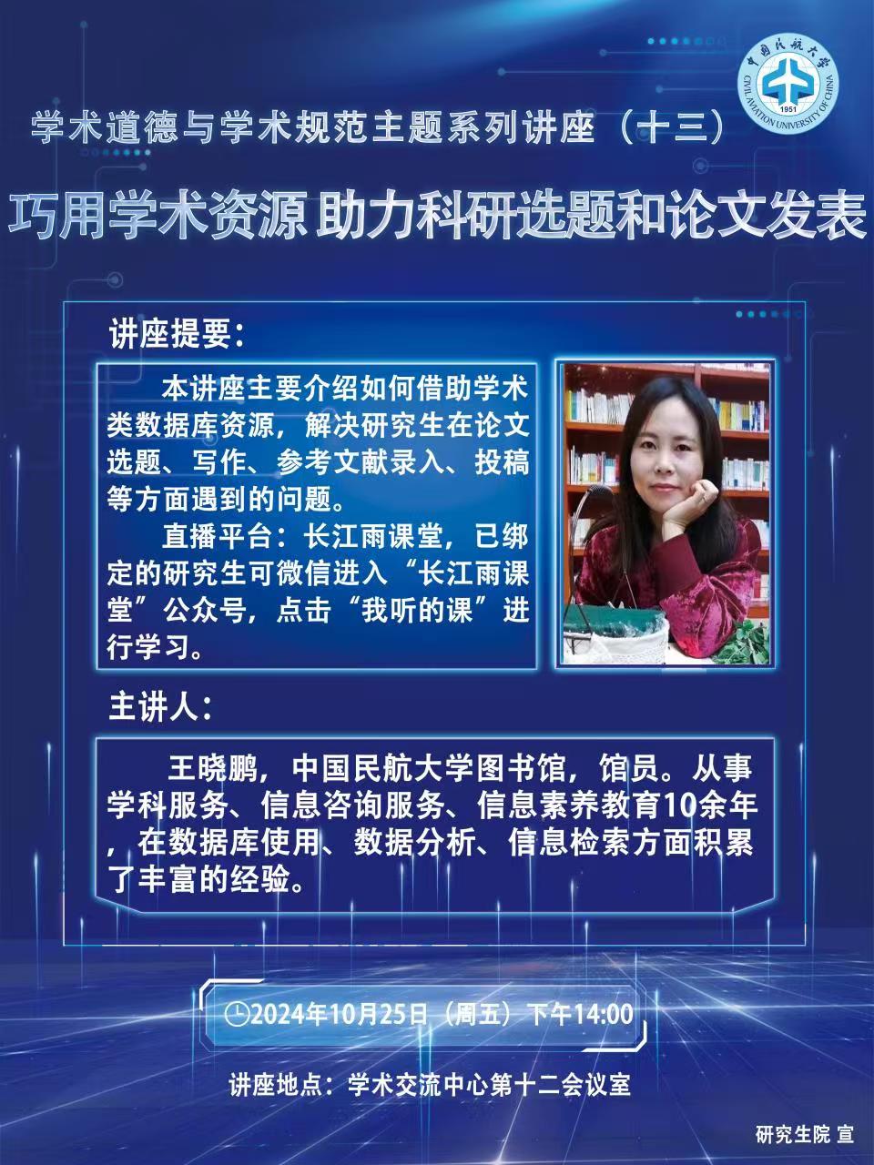 讲座题目:巧用学术资源 助力科研选题和论文发表