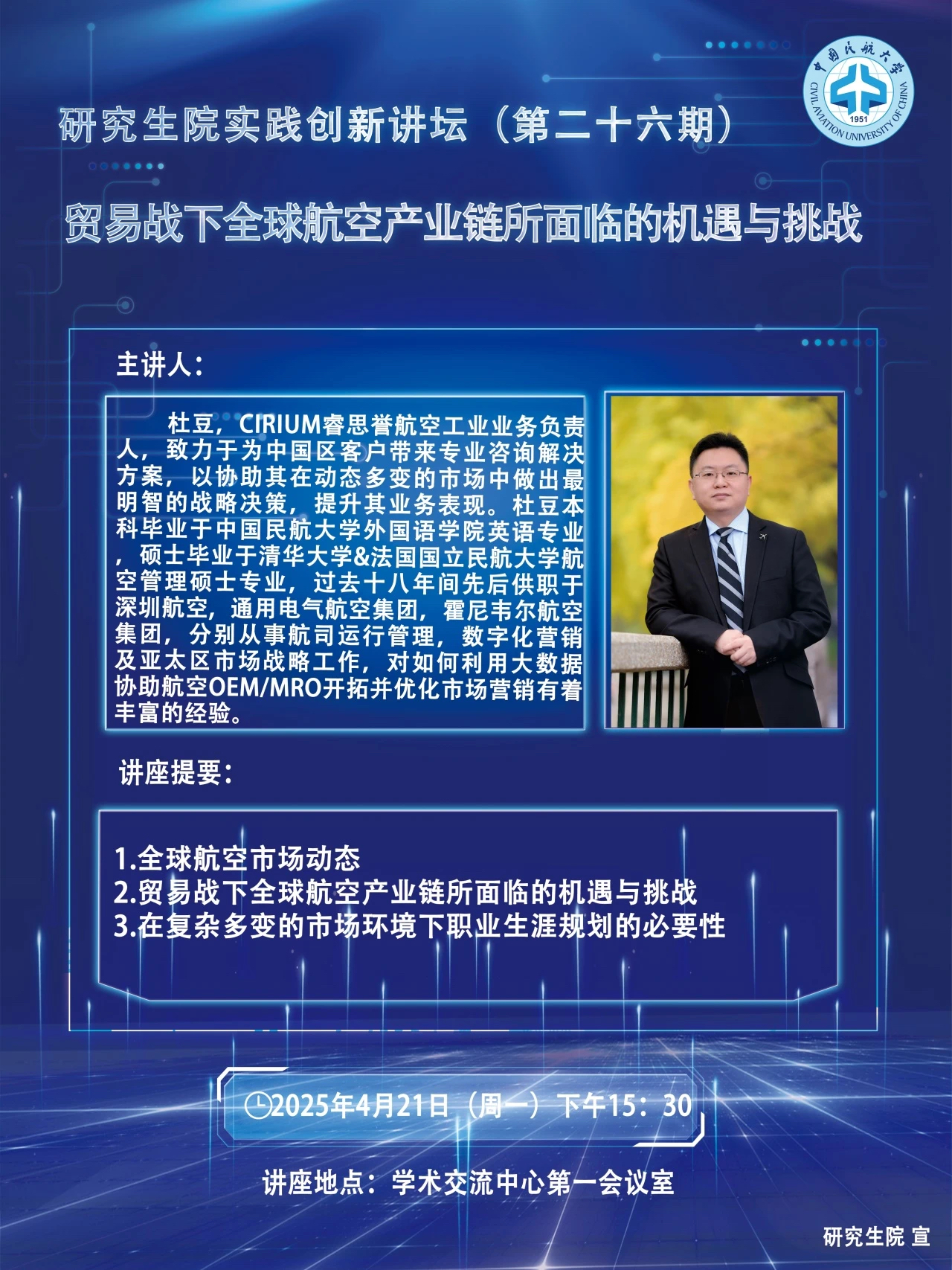 讲座主题:贸易战下全球航空产业链所面临的机遇与挑战