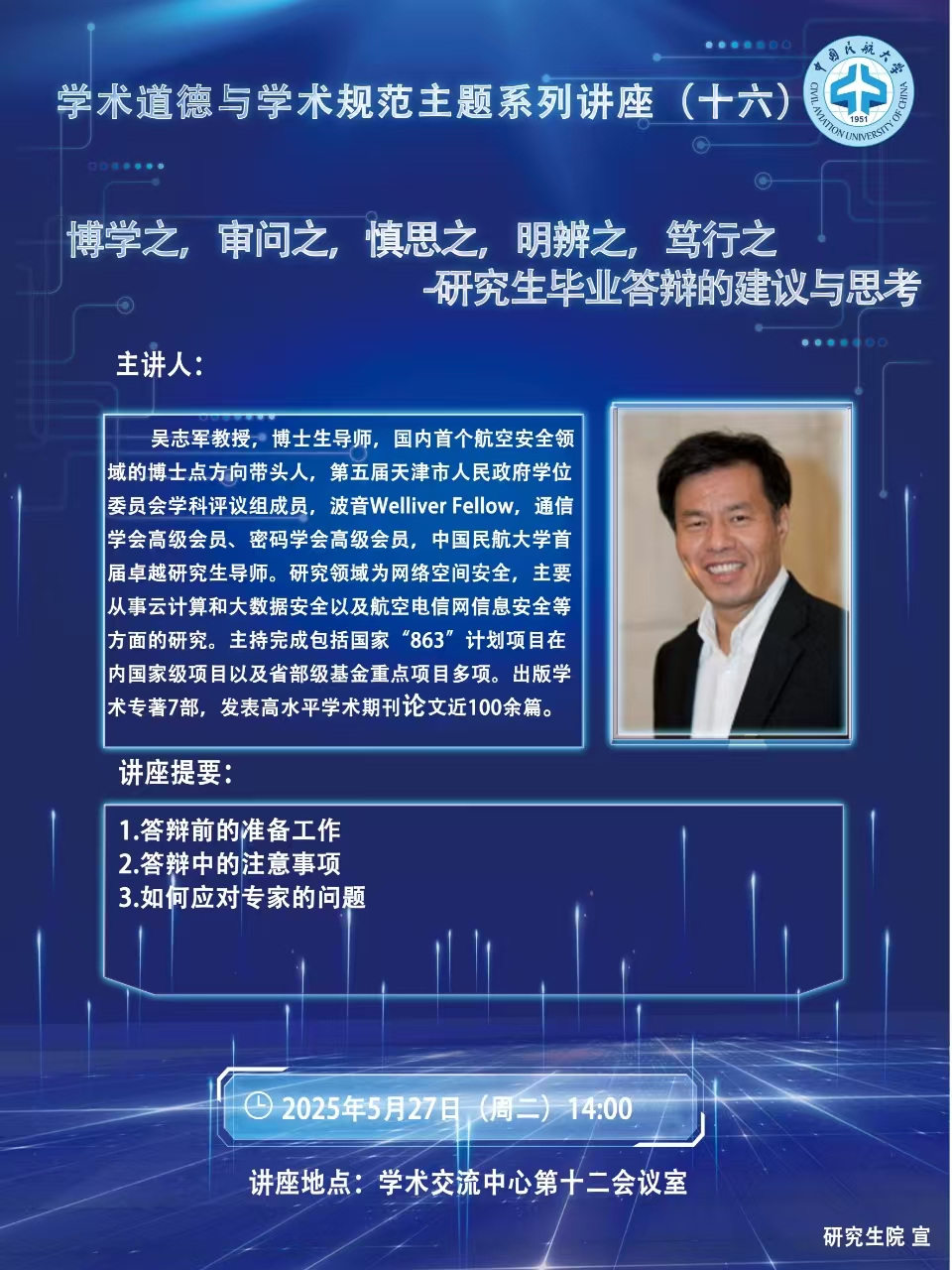 讲座题目:博学之,审问之,慎思之,明辨之,笃行之--研究生毕业答辩的建议与思考