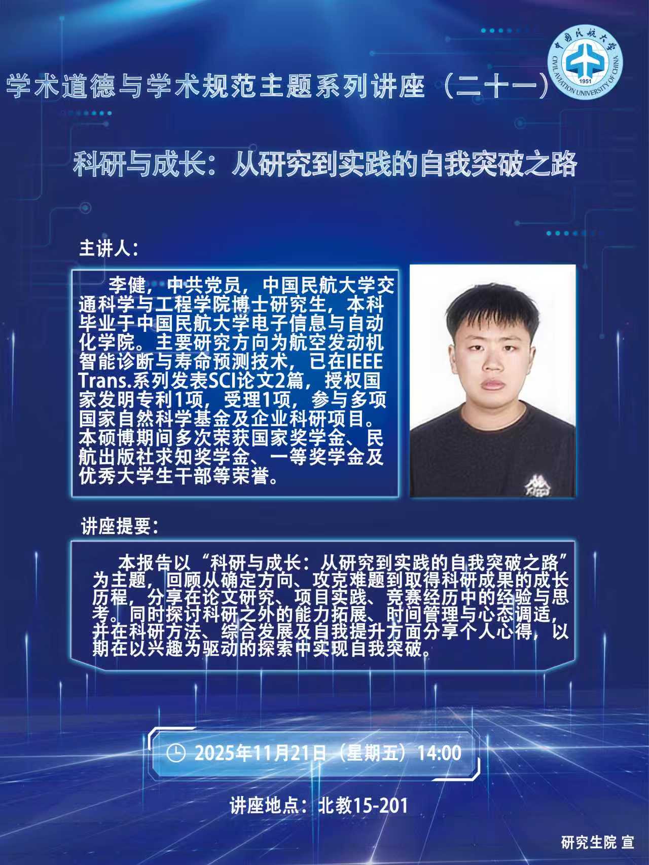 讲座题目:科研与成长:从研究到实践的自我突破之路