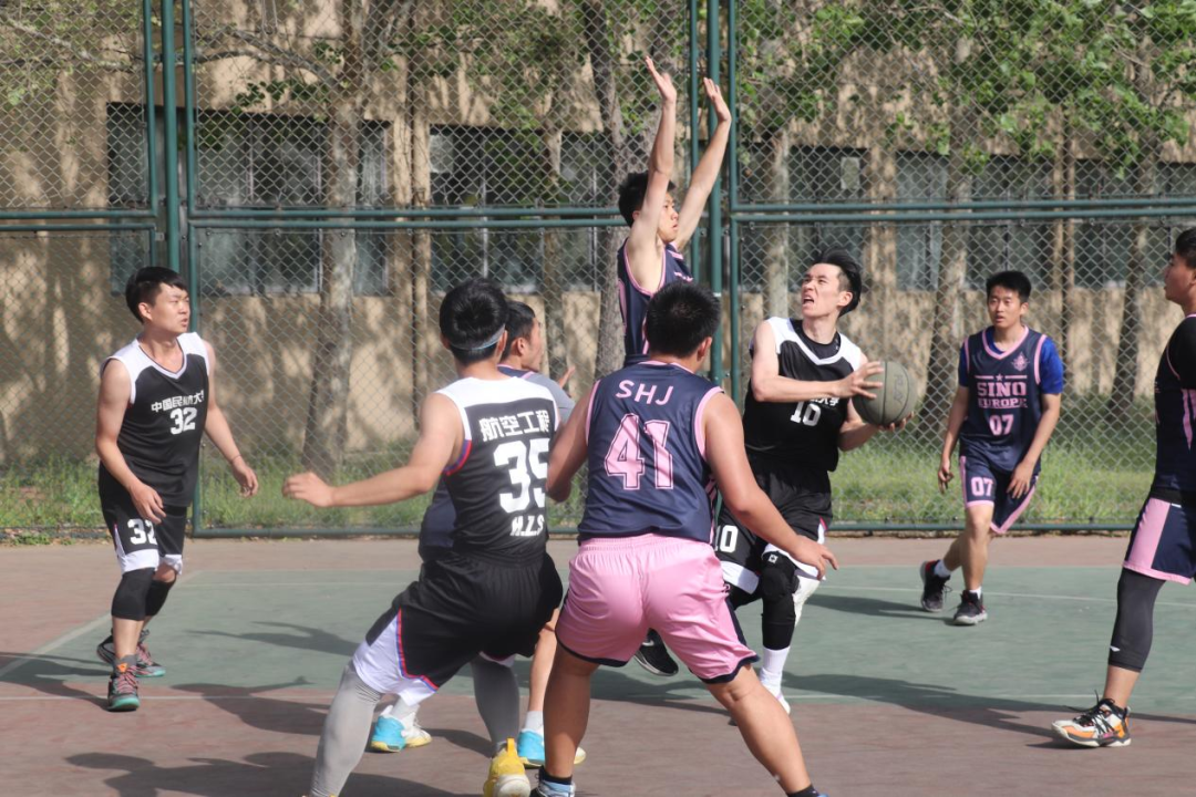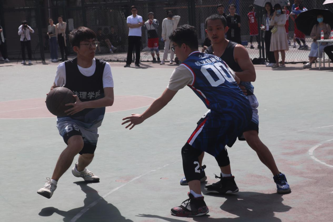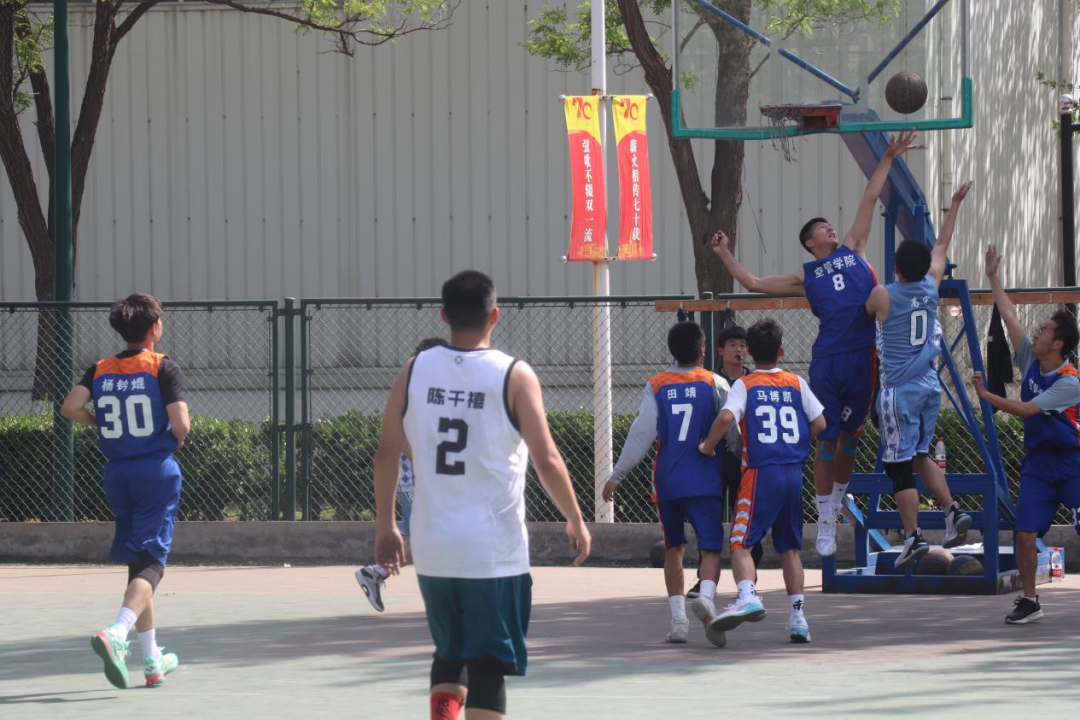2号场地进行的是空管学院队和安工队的比赛。赛场上双方队员你追我赶,努力把握每次进攻机会。扎实的运球,精准的投篮,积极的防守,都体现了双方队员的刻苦训练。最终空管学院队以49:32的比分获得了这场精彩对决的胜利。