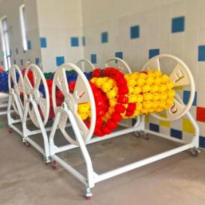 1.泳道线收集设备,由车架、滚轴、旋转盘、拉挡、滚筒和万向轮组成; 2.不怕潮湿、耐腐,永不生锈,可拼装,安装简易,安全可靠,强度高; 3.配备四只高强度静音万向轮,移动方便灵活,其中两只带刹车功能; 4.每台可绕一条50米泳道线或两条25米泳道线; 5.尺寸:长1650mm×宽920mm×高1320mm; 6.车架片、拉档材质为304不锈钢方管,表面浸塑材质为PE; 7.旋转盘采用线性高分子聚乙烯材料;滚筒采用304#不锈钢圆管,外部包裹线性高分子聚乙烯材料; |