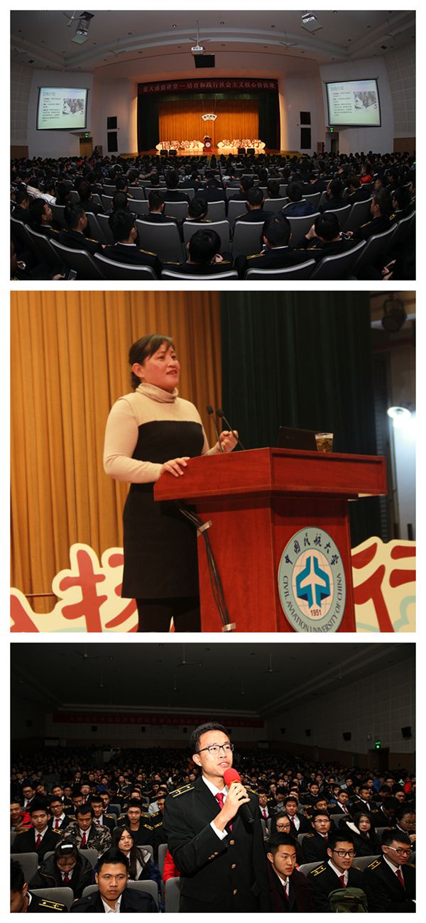 讲座中,张佳亮通过给出思考题的形式分别从工作责任、家庭责任和社会责任三方面讲述责任之于人的重要意义。她认为,赢得他人的认同和尊重是美好生活的源泉,强调作为一个民航人要敬业,做任何事情都要有责任心,不怕不会,一切技能都可以通过学习获得。不管学生未来走向民航的哪一个岗位,都要勇敢接下任务,尽自己最大努力做好。