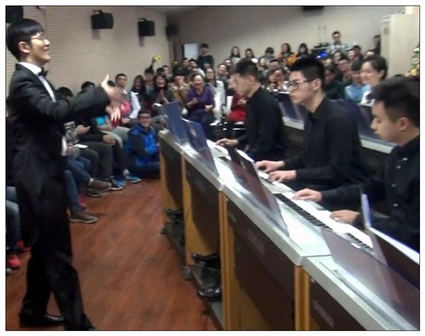 本次新年音乐会分上下半场,经典曲目《克罗地亚狂想曲》迅速让观众的思绪跟随明快的节奏跳跃起来。钢琴四手联弹、《匈牙利舞曲》、《卡农》、《苏维埃进行曲》完美地诠释了钢琴演奏的默契配合,展示了实验班同学的合作能力。由实验班同学自编自演的创新曲目《月亮河&玫瑰人生》、《Libertango》、《雪绒花》在重温经典的同时加入了现代元素,别有一番韵味。经典曲目《波莱罗舞曲》、《乡村骑士》、《拉德斯基进行曲》等合奏曲目也沿用以往结课考核的形式,再次向广大师生展示了电子管风琴组成的交响乐队的效果。