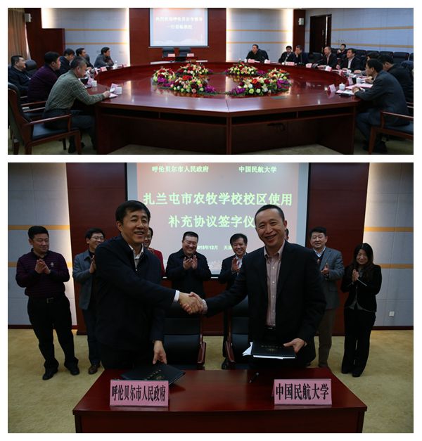 2014年4月14日,中国民航大学、呼伦贝尔市人民政府、扎兰屯市人民政府、内蒙古民航机场集团公司四方共同签署《关于共同组建中国民航大学内蒙古飞行学院的合作协议》,2015年1月31日中国民航大学与呼伦贝尔市人民政府签署《扎兰屯农牧学校校区使用协议》。