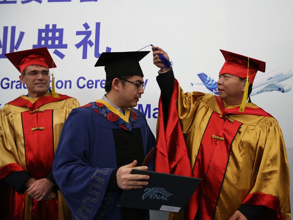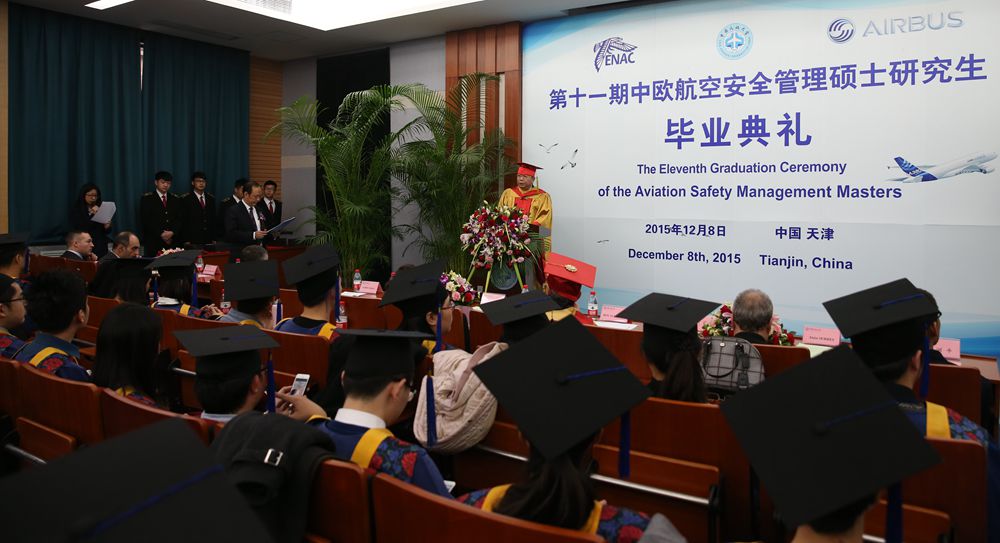 本次举行毕业典礼的第十一期中欧航空安全管理硕士项目共有“空中交通管理”和“航空导航工程”两个方向。2012年初,在欧盟与中国民用航空合作项目框架下建立起这两个方向的硕士培养项目,并于2014年起得到空客公司的资助。项目专业课程全部由法方教师授课,中方教师辅助。学员修满所需课程学分,完成毕业论文并通过答辩后,由法国国立民航大学授予毕业证和专业硕士学位证书,由中国民航大学授予学习经历证明。