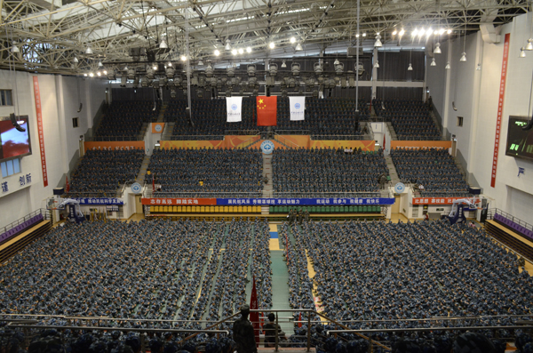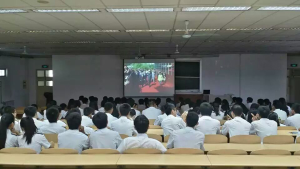 上午8时新生开始入场。在南院体育馆主馆、副馆共容纳5700余人,北院活动中心阶梯教室容纳约500名飞行学院新生。6200余名新生共同关注这场阅兵盛典。观看现场全体新生纪律严明,肃穆认真。当习近平主席发表讲话时,全场一次又一次响起热烈的掌声。当阅兵现场奏响国歌时,全体新生自觉起立,演唱国歌《义勇军进行曲》。外国语学院2015级辅导员刘子变告诉记者:“当国歌声响起时,当唱第一句国歌时,作为一个中国人,特别感动,特别想哭,那种不明所以的情怀,突然地涌上了心头。这一定就是深埋在心中的爱国情。”