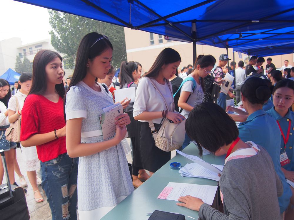 在迎新现场依次设有保卫处、招生办、学工部绿色通道、校医院、公寓公司、学生会以及职业技术学院、乘务学院、研究生相关学院的迎新工作区域,学工部、教务处、宣传部、体育部、后勤公司、公寓公司、网络中心、保卫处、校医院、财务处、基建处、后勤处等12个部门全力参与,各部门分工协作,迎新工作安全有序地进行。