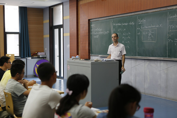 中欧航空工程师学院教学楼内,外教Joel正在用法语讲授化学课,学生们不时记录着板书的内容。2014级的孟相至下课后讲述了自己的开学感受:“开学第一课同学们普遍精神状态比较好,上课比较积极,没有迟到现象,虽然这是我们这个班第一次有外教教授化学课,略有不习惯,但大家有良好的法语基础,所以适应得很快,与老师有很多互动,总的来说,同学们已经从假期中调整了过来,适应了学校紧张充实的生活。”