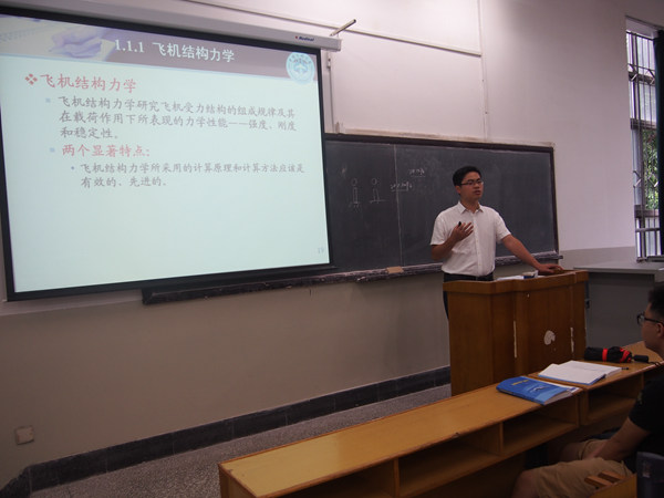 早上8时,北教四107教室内,学校蓝天青年学者、航空工程学院李顶河老师在讲台上侃侃而谈,为台下频频点头的学生讲解飞机结构与强度,营造出融洽的课堂气氛。