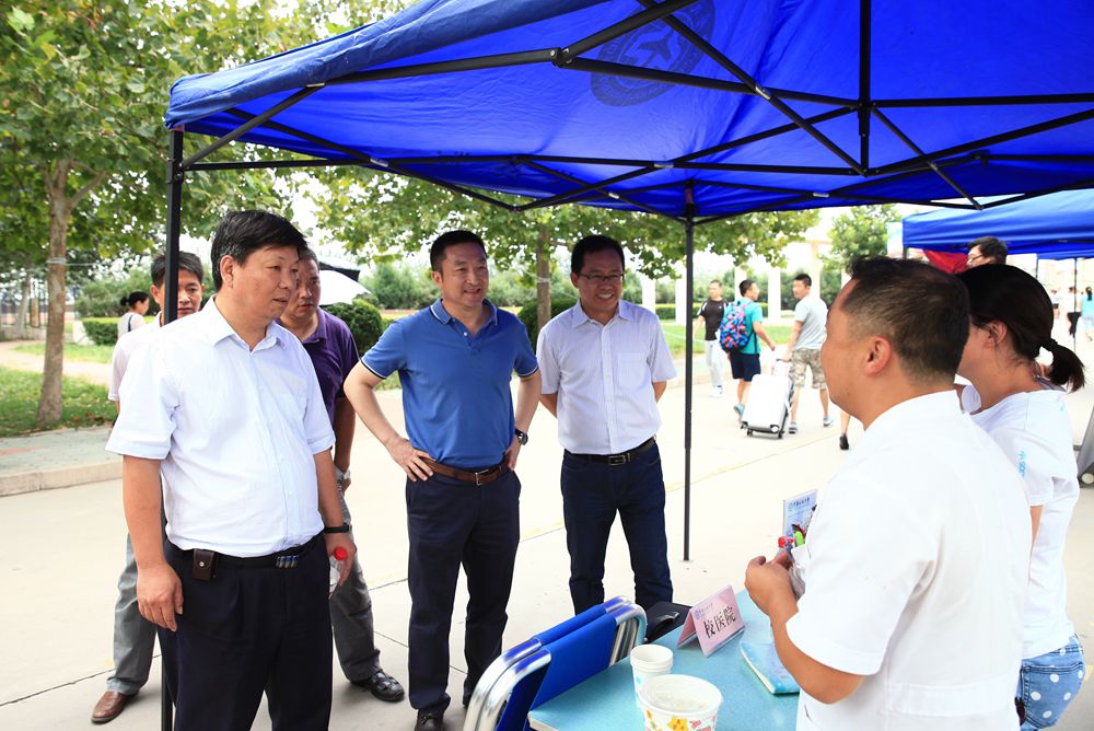 校领导一行还慰问了迎新现场的工作人员,仔细询问相关工作人员新生的报到情况,并进行现场指导。