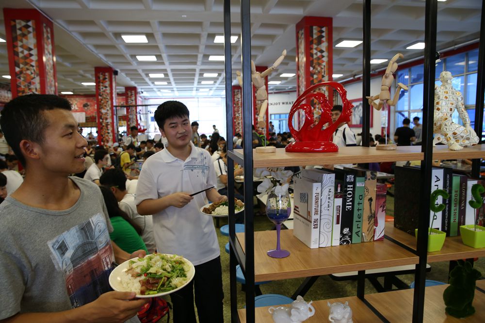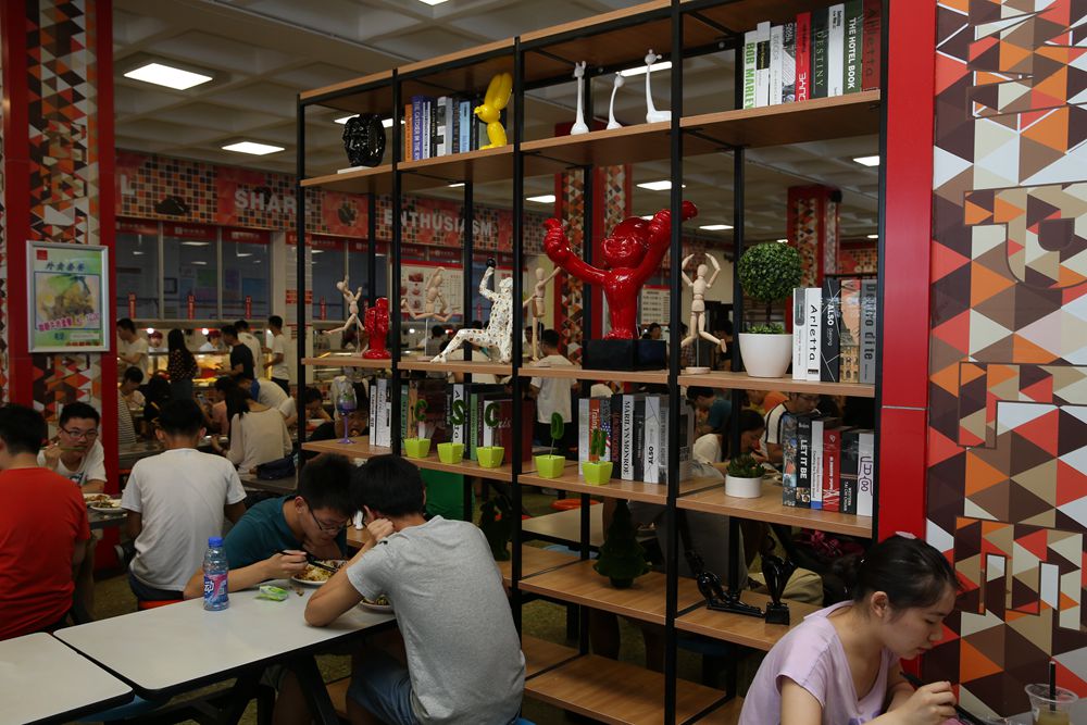 本网讯(通讯员杨雯摄影庞杰)近日,中国民航大学北区综合食堂在一楼大厅就餐区域内增设两个长2.4米、高2.5米的六层工艺书架,并将于近期购置不同种类的书籍摆放于此,供学生们在就餐等候或闲暇休息时阅览。