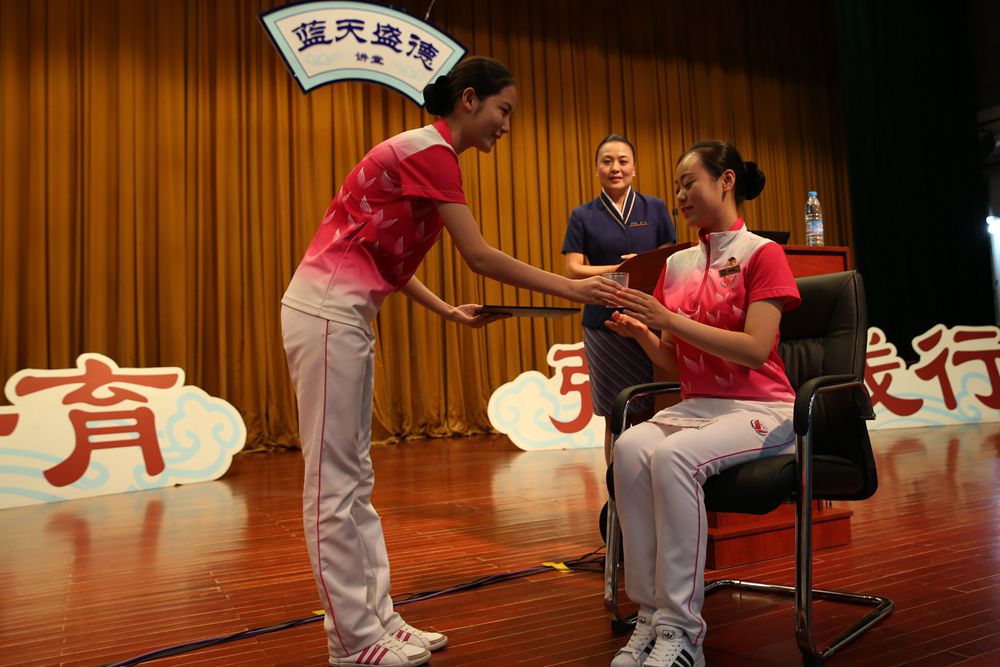 活动交流环节,一位南航订单班乘务学生问及韩慧芳关于如何进入到南航公司“春风组”的问题。她表示:“进入到这个小组的话,对个人的提升有很大帮助,当你在其经过历练,以后遇到任何问题基本会解决。”她建议,想成为一名合格的乘务员,一定要扎实地学好专业知识,有条不紊地处理好突发情况,拥有一颗服务大众、服务社会的爱心。