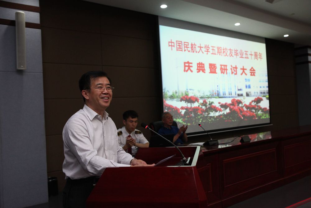景一宏代表全校师生对五期校友的返校表示热烈的欢迎。他强调,五期校友作为中国民航大学第一届本科毕业生,沿承下来的严实向上的精神、优良的品格、优秀的传统影响了一批又一批的中航大学子。景一宏对校友为学校的人才培养、科学研究、学科建设以及发展所作出的贡献表示肯定,指出中国民航大学现在的成就离不开各位校友的帮助支持,欢迎各位校友常回家看看。