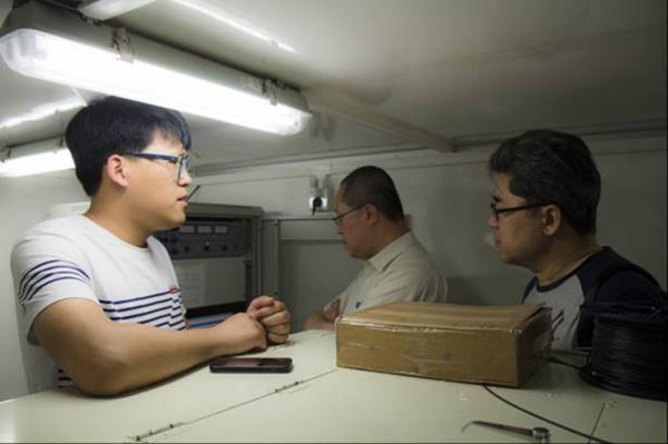 双方在测风激光雷达数据处理仓中交流