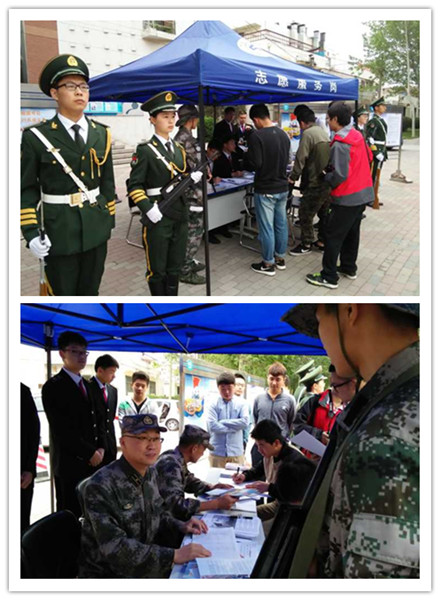 本网讯(学生通讯员王晓红)5月9日、10日,由东丽区武装部主办,校国防协会、国旗护卫队承办的大学生征兵宣传活动在中航大展开。两天预报名80余人。