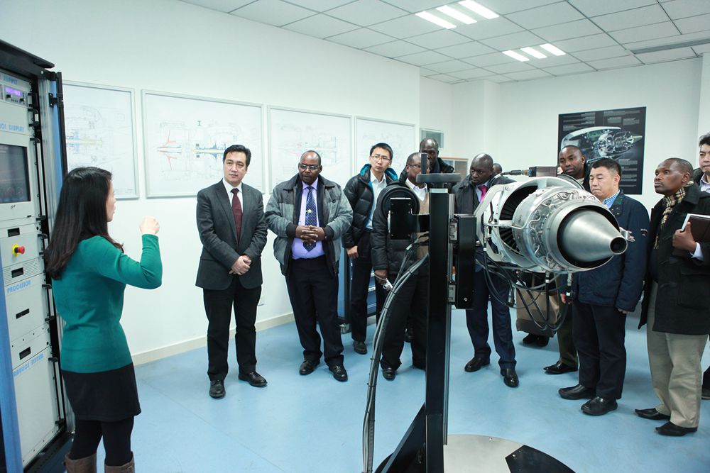 会晤结束后,白杰陪同客人参观学校中欧航空工程师学院发动机实验室、材料实验室,以及工程技术训练中心,客人对学校机务专业人才培养能力给予高度评价。