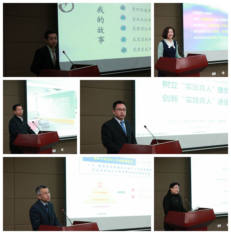 会上,天津财经大学学生孔令仁作思政课公开课大赛获奖作品展示,天津师范大学历史学院学工办主任吕由作高校辅导员精品项目成果展示,中德职业技术学院学工部部长孙更春作高校心理健康教育工作典型经验汇报,中国民航大学学工部部长吕嘉炜作高校实践育人典型经验汇报,天津理工大学学工部部长张继东作高校大学生分类指导典型经验汇报,天津工业大学马克思主义学院院长张健华作高校思想政治理论课建设工作典型经验汇报。