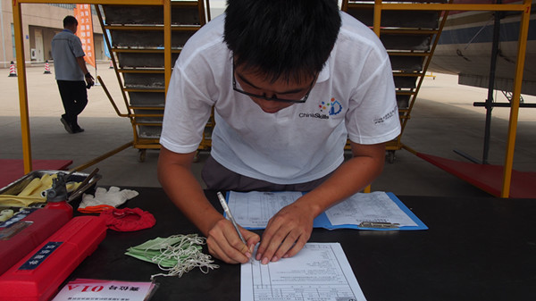 开始记者以为是记一些数据或问题。休息时间采访了长沙航空职业技术学院的参赛选手廖梦凡,他回答说:“我们那是在签名。在民航领域内,每做完一项工作都要签名确认。平时练习如此,比赛如此,将来工作了也是这样。这是确保安全的需要,是负责任的体现,更是自信的表现。”