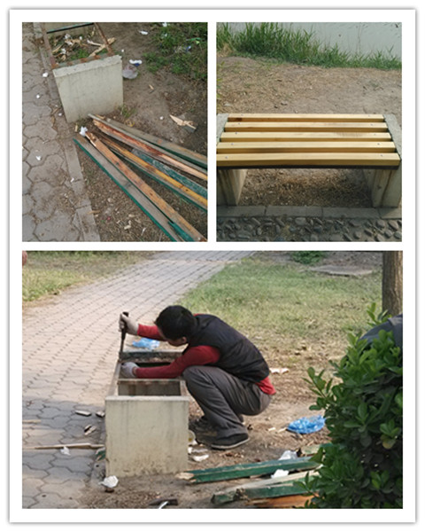 内容提要:近日,后勤服务总公司综合设备维修科的师傅将北院湖边41张座椅换了新装。