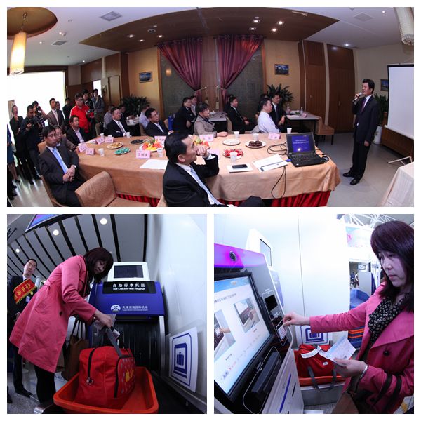 下午3时20分,自助行李托运系统试用启动仪式在天津滨海国际机场航站楼内举行。首先,项目负责人高庆吉教授介绍了自助行李托运系统的功能、产品价值、与同类产品对比和未来发展等。