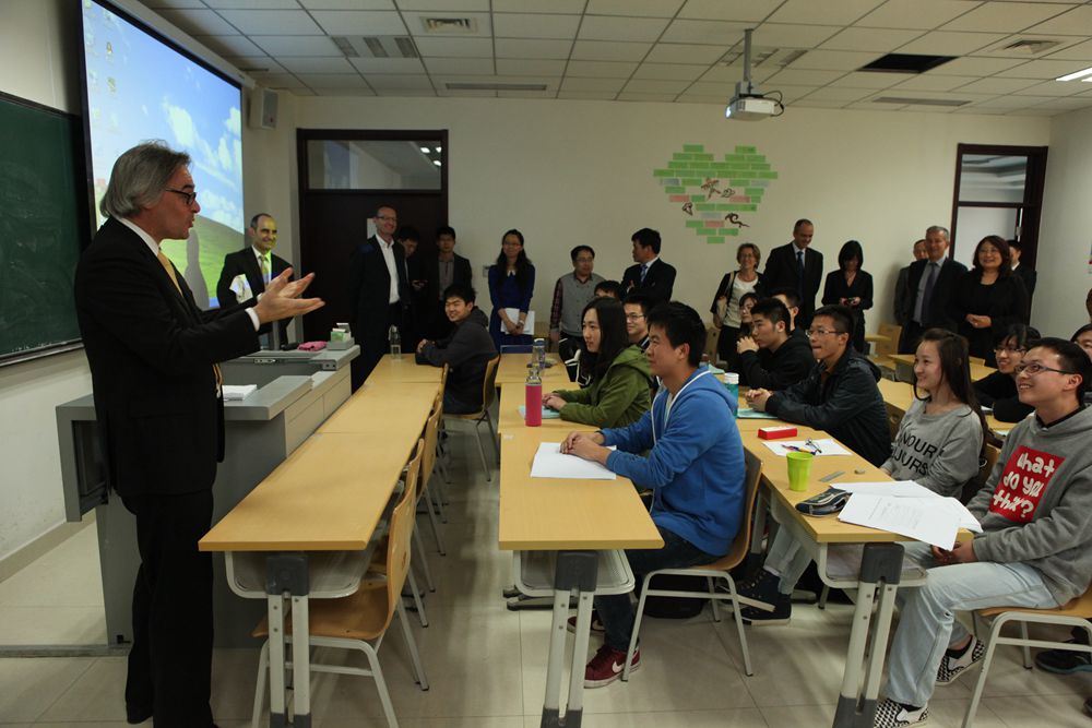 会后,David Tournadre一行观摩了中欧航空工程师学院学生上课情况并进行互动,组织小型讨论,与学生在中法文化、毕业实习、申请工作等方面进行交流。通过沟通了解,David Tournadre一行对中欧航空工程师学院人才培养质量给予高度评价。