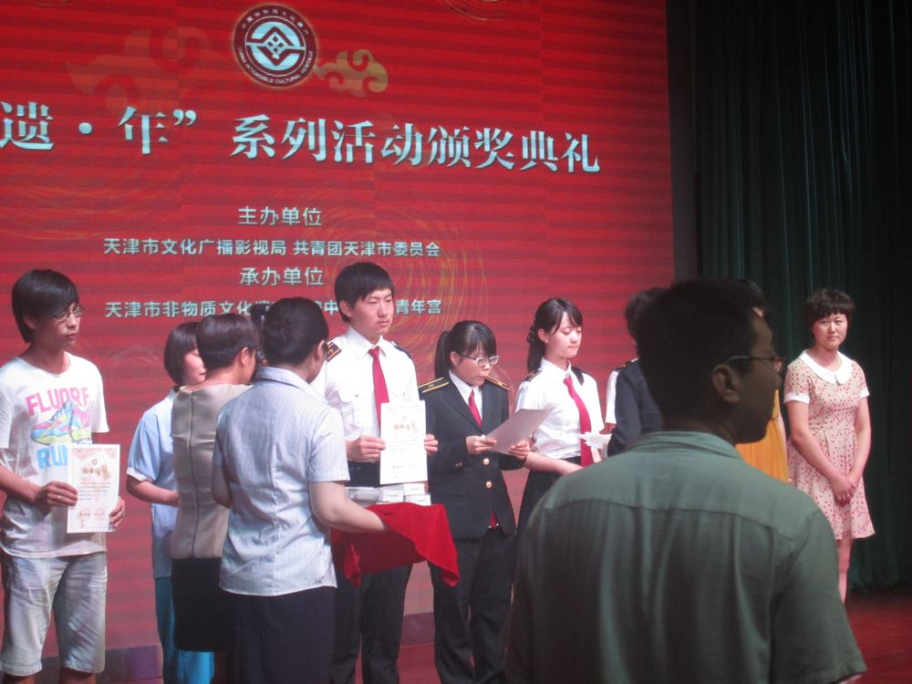 本网讯(通讯员杨俊杰)6月22日下午,天津市“非遗•年”系列活动闭幕式暨颁奖典礼在天津青年宫举行,本市部分高校近200名学生代表参加了典礼。本次活动中,我校学生主要参与征文比赛,宋晶晶、刘雨涵获得一等奖,另外,我校还荣获二等奖2项、三等奖4项,获奖人数占总人数的一半以上,同时,我校还获得了“非遗•年”系列活动优秀组织奖。