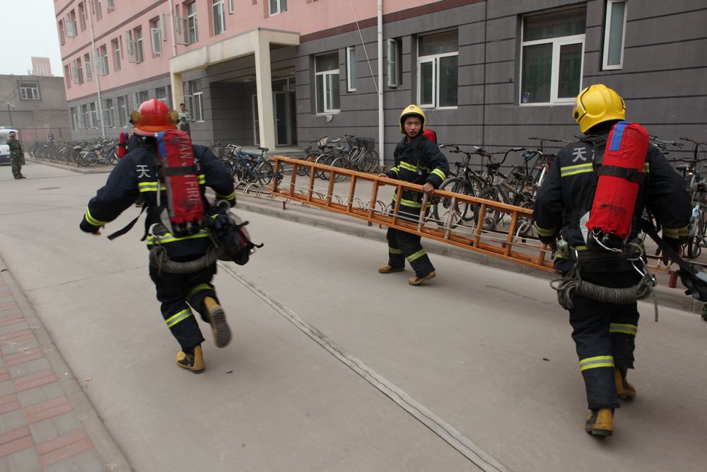 警铃拉响后,立即北24公寓3楼的窗口浓烟滚滚,东丽支队以最快的速度抵达火灾现场并指挥救援活动。救援小组首先进入学生公寓疏散了第一批18名被困学生,紧接着,消防小组带着消防水管以及灭火器进入公寓进行灭火并引导第二批9名被困学生有序逃离现场。最后,逃生小组搭好云梯援救出了二层火源处的一名学生并用担架抬出了一名受伤患者。整个救援活动仅仅持续了几分钟,却让现场的所有人感受到了消防员们的训练有素,所有被困人员全部安全救出。
