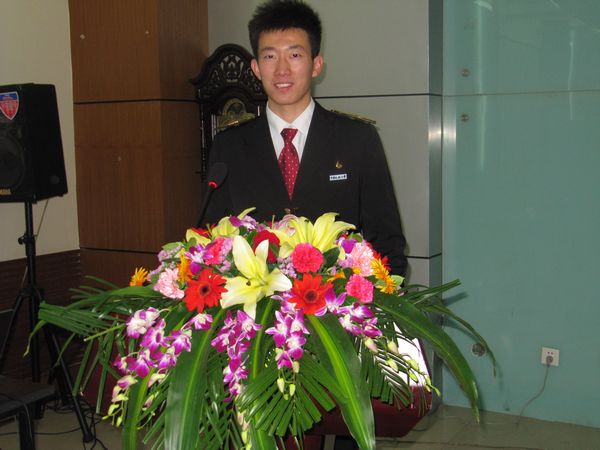 天津市先进集体标兵、中欧航空工程师学院096041A班班长褚玉龙在评选现场