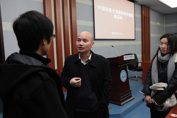 本网讯(通讯员丁艳摄影庞杰)11月22日,由校党委宣传部组织的中国民航大学新闻宣传报道培训班开讲。中国民航报社副总编杨少卫在中欧学院报告厅为我校教职工公文管理员、新闻通讯员及校媒学生记者、通讯员作了一堂“头脑风暴”讲座。