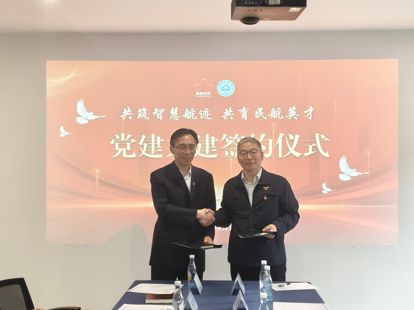 本网讯 近日,海航科技党委副书记、海航科技董事会秘书姜涛一行赴中国民航大学思政课实践教育基地,与经济与管理学院签署党建共建协议,共绘民航人才培养新蓝图。经济与管理学院党委主要负责人陪同,学院教师代表及学生代表参加活动。