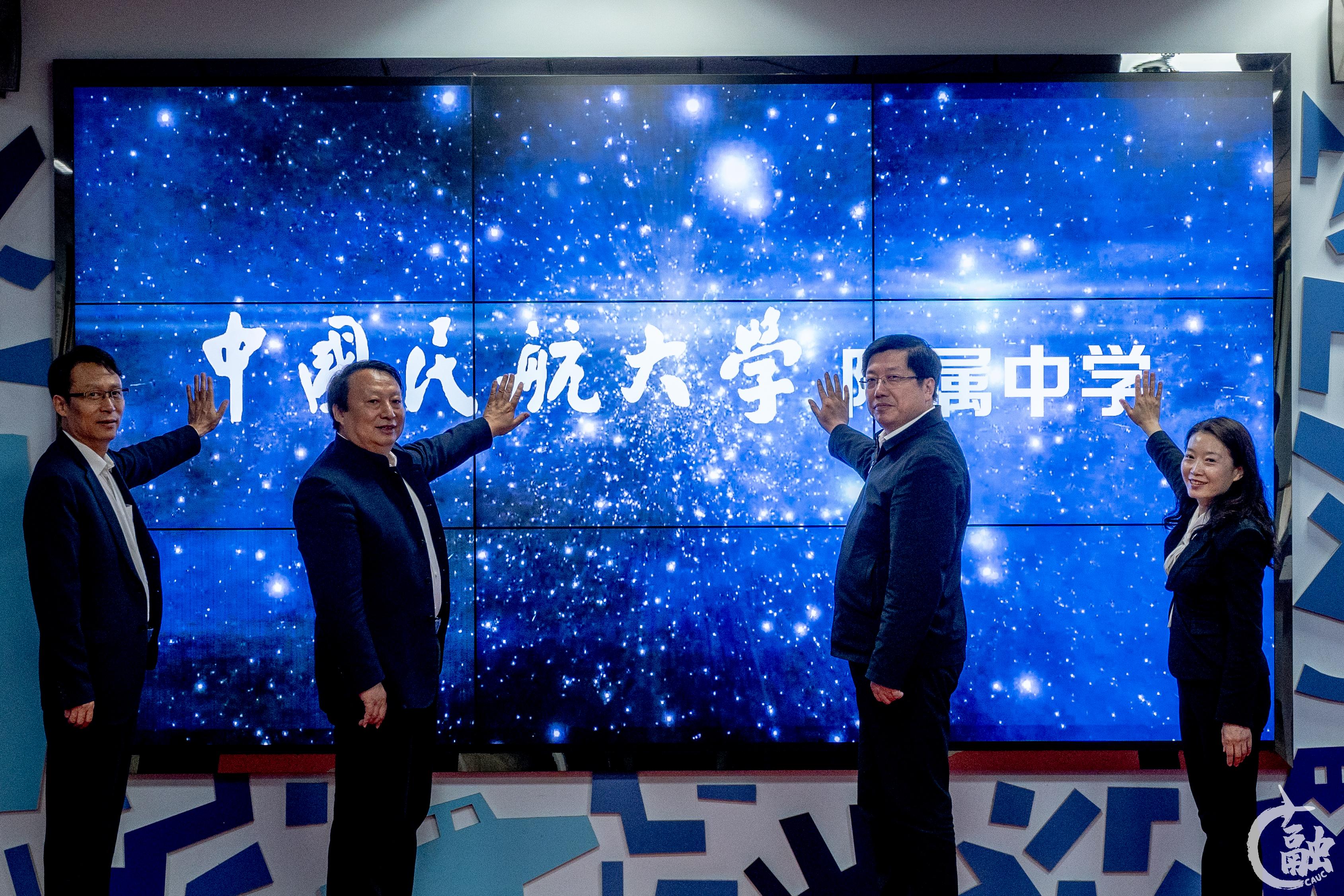 丁水汀在致辞中向河北区人民政府一直以来的帮助和支持以及天津市第十四中学持续向学校输送高质量生源表示感谢。他向在场师生介绍中国民航大学发展历程以及学科优势,并指出,中国民航大学坚持服务国家战略产业,选择“航行体系安全保障低空经济发展”“负碳能源推进绿色航空升级”“人工智能赋能民航智慧运行”“适航与智慧运维支撑国产大飞机商业成功”四条赛道促进民航科技自立自强,支撑行业未来发展,四条赛道的产业升级既是新质生产力的典型代表,也是中国民航大学推进教育、科技、人才“三位一体”协同融合发展的重要契机。未来,双方将以“中国民航大学附属中学”新校名启封为契机,在航空特色教育领域,持续广泛在课程资源开发、实训基地建设、研训基地建设等方面合作,共同助力创新人才培养。